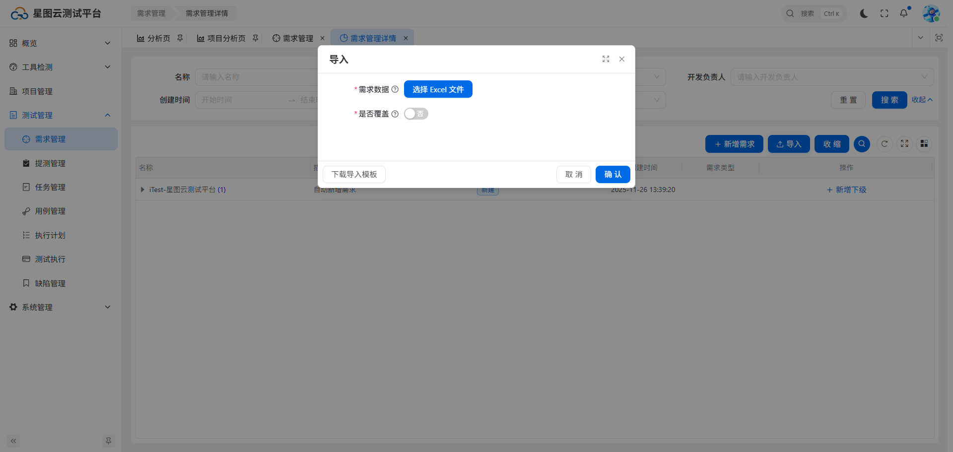 导入需求点:点击【导入】按钮,导入符合模板规定格式的需求excel文件,点击【确认】按钮,文件中功能点导入成功,如下图所示:
